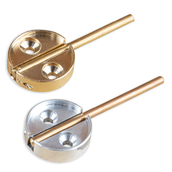 - Прецизионная Конструкция: Устройство состоит из латунной чашки и выдвижного цилиндрического стержня (штока).