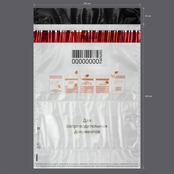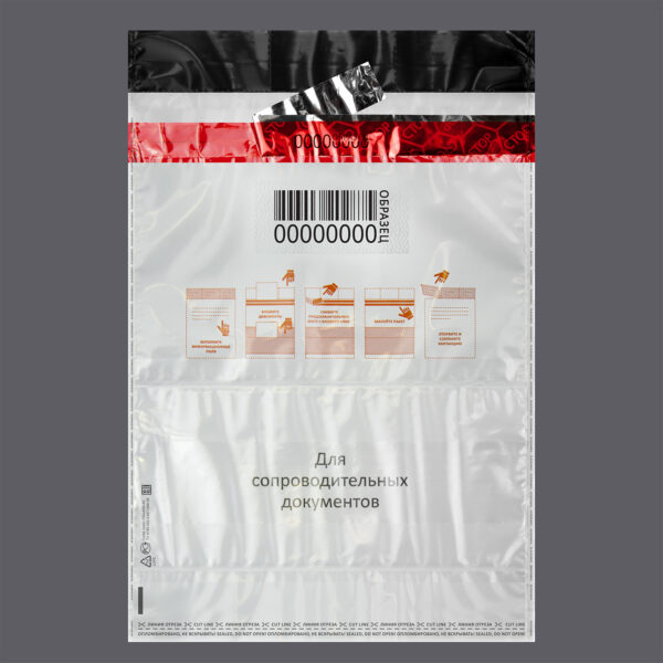 Пакет с индивидуальной нумерацией оснащен усиленным швом по краям и пломбировочной сейф-лентой, обеспечивающей однозначную индикацию попыток несанкционированного вскрытия. Каждый пакет имеет уникальный номер и штрих-код, а также специальные поля для внесения записей ручкой или маркером.